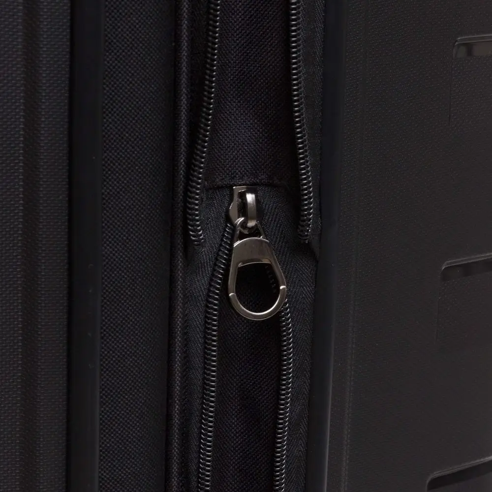- Чемодан с 2 отделениями: одно из них с фиксирующими ремнями и сетчатой шторкой на молнии, второе — с разделителем на молнии