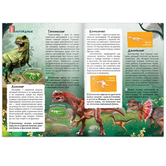 Книга с наклейками «В мире динозавров», 16 стр.