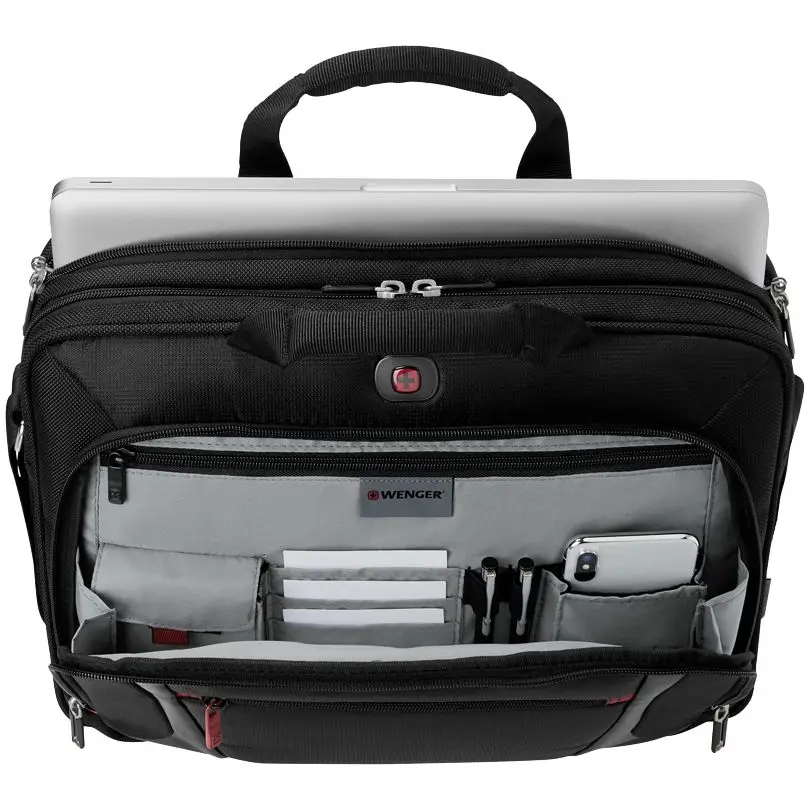 - Отделение с карманом-органайзером включает ключницу, многочисленные кармашки для пишущих принадлежностей, документов и карты памяти, карман для телефона