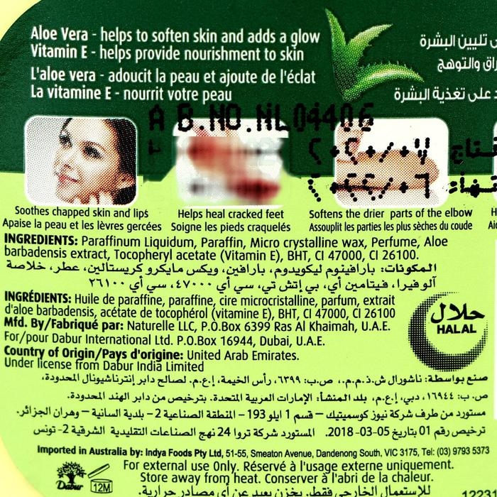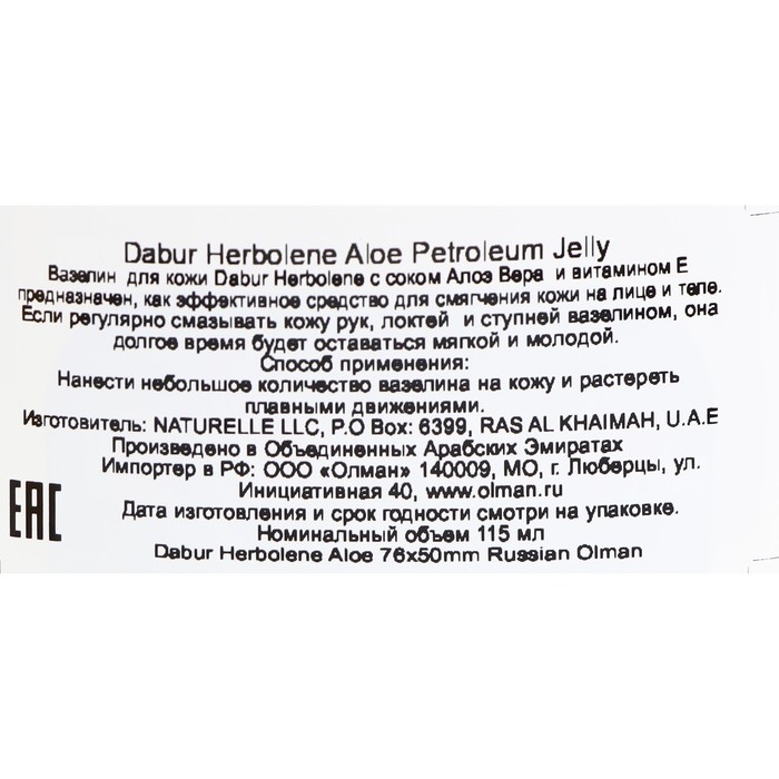 - Вазелин Dabur Herbolene не забивает поры, гипоаллергенен, не раздражает кожу и глаза.