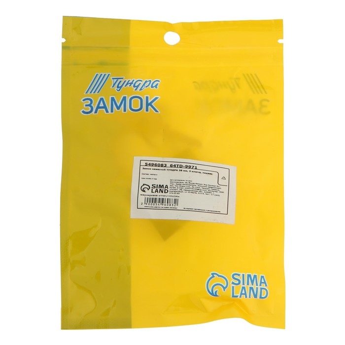 Замок навесной ТУНДРА 38 мм, 3 ключа, подвес