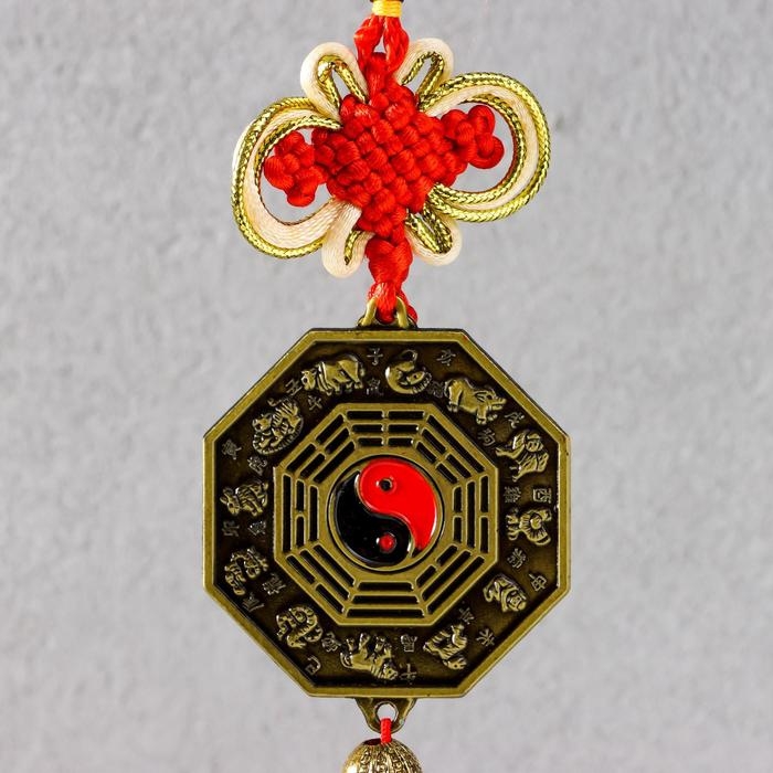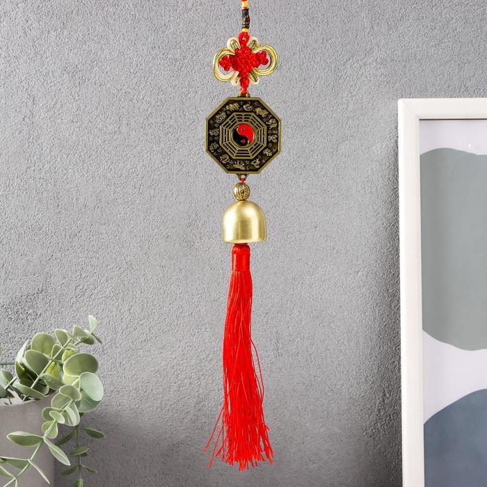 Колокольчик металл "Монета Инь-ян с узлом счастья" 1 колокол 38х5х3 см