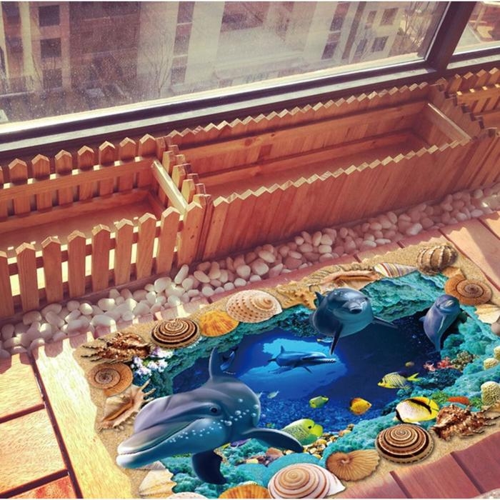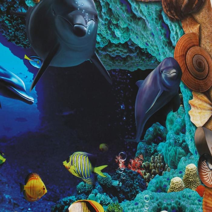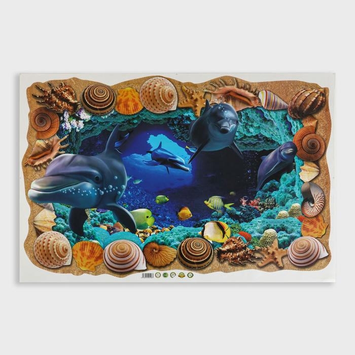 Наклейка интерьерная 3D "Дельфины" на стену, 90 х 60 см, влагостойкая, ПВХ