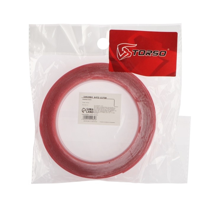 Клейкая лента TORSO, прозрачная, двусторонняя, акриловая, 15 мм x 2 м