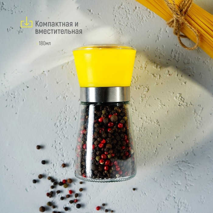 Мельница для специй Доляна «Модерн», 180 мл, 6,5×13 см, цвет жёлтый