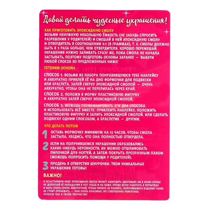 Наборы для опытов «Украшения из эпоксидной смолы: сделай сам кулон и браслеты»