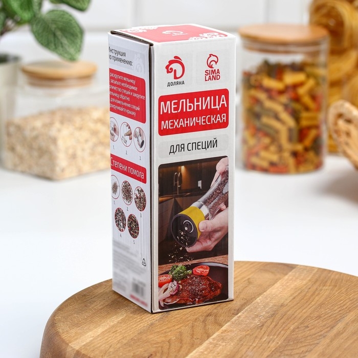 Мельница для специй Доляна «Модерн», 200 мл, 6,5×19 см, цвет жёлтый