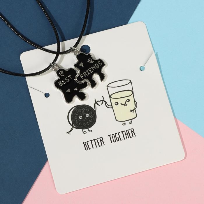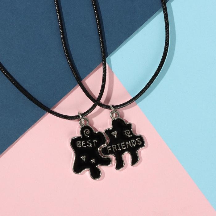 Кулоны на шнурке «Неразлучники» пазлы с сердечком, цвет чёрный, 45 см