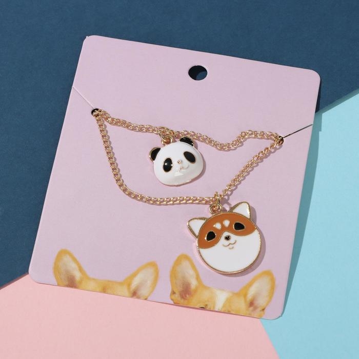 Кулоны «Неразлучники» корги и панда, цветные в золоте, 45 см