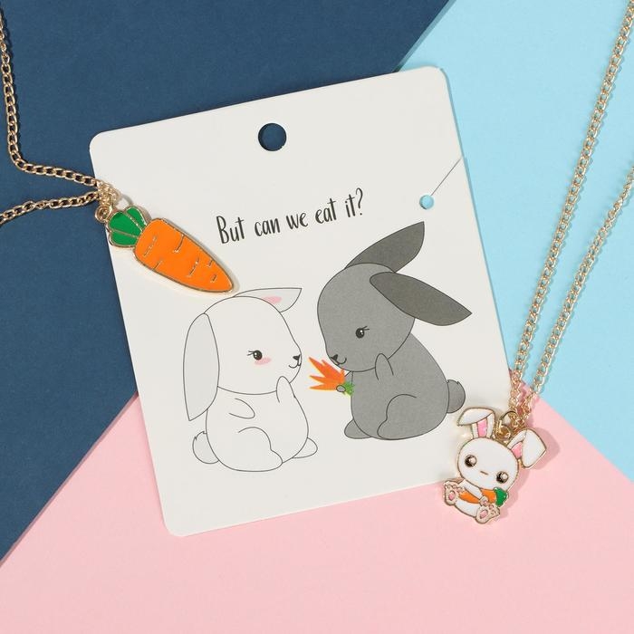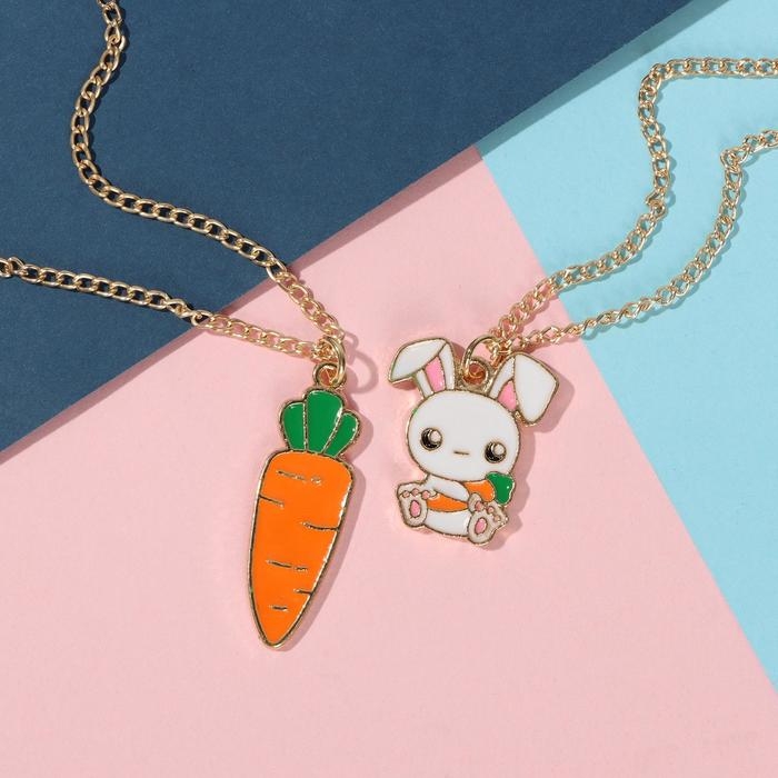 Кулоны «Неразлучники» морковка с зайцем, цвет бело-оранжевый в золоте, 45 см