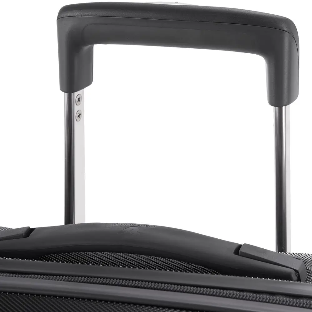 Корпус изготовлен из ударостойкого поликарбоната с покрытием, имитирующим алмазные грани, — такая технология препятствует появлению царапин и делает чемодан еще более прочным и выносливым.