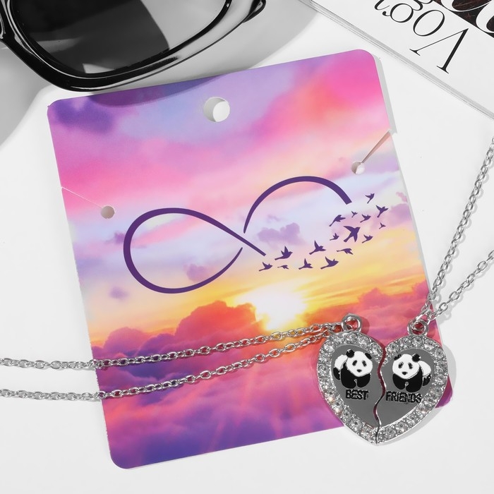 Кулоны «Неразлучники» сердечко с пандами, цвет чёрно-белый в серебре, 45 см