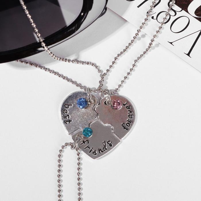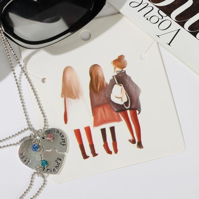 Кулоны «Неразлучники» тройное сердце, цветные в серебре, 45 см