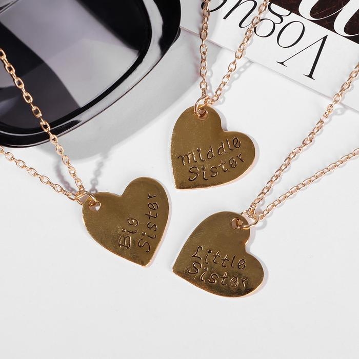Кулоны «Неразлучники» три сестры, три сердца, цвет золото, 40 см