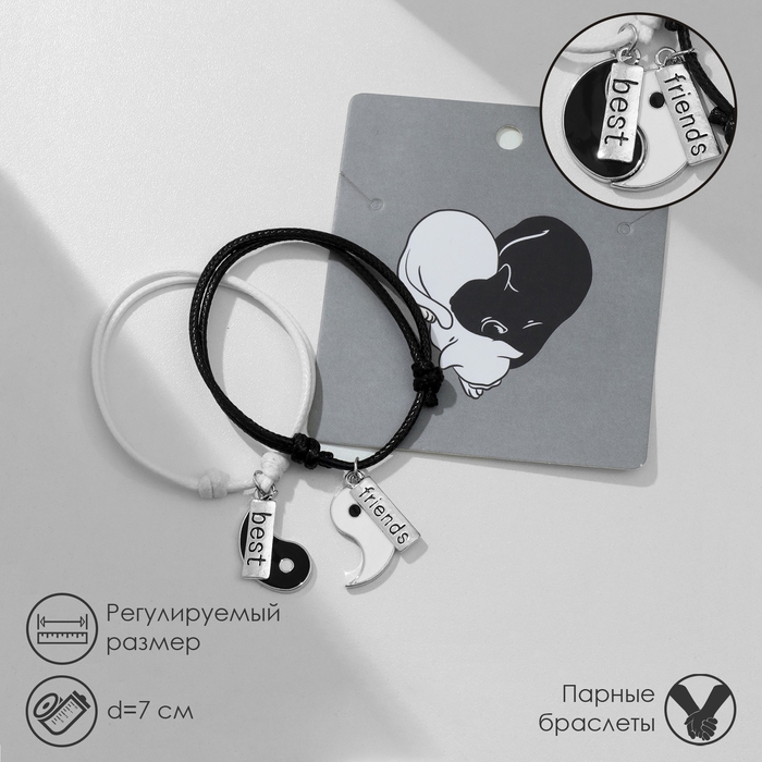 Браслеты «Неразлучники» инь-ян, дружба, цвет чёрно-белый