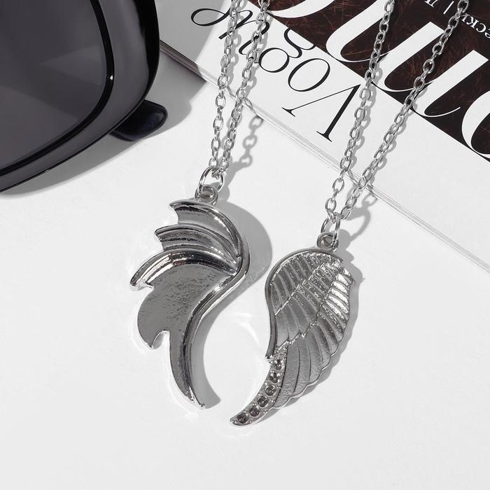 Кулоны «Неразлучники» два крыла, цвет серебро, 45 см