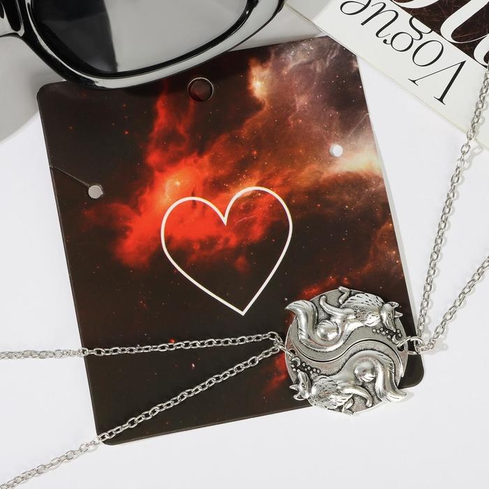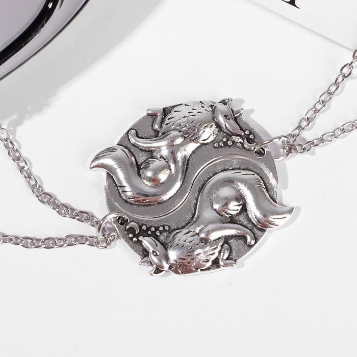Кулоны «Неразлучники» волки инь-ян, цвет серебро, 45 см