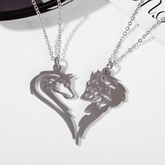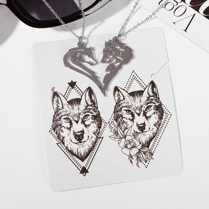 Кулоны «Неразлучники» волк и волчица, цвет серебро, 45 см