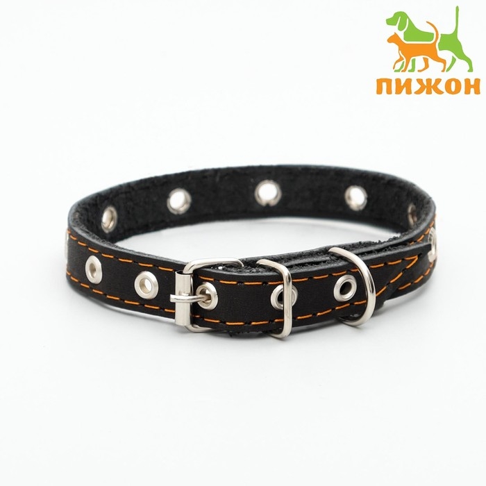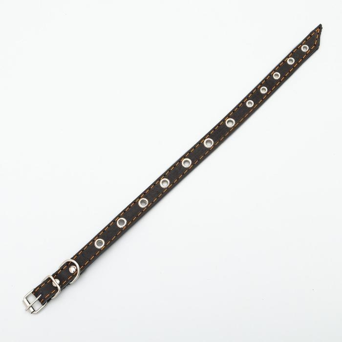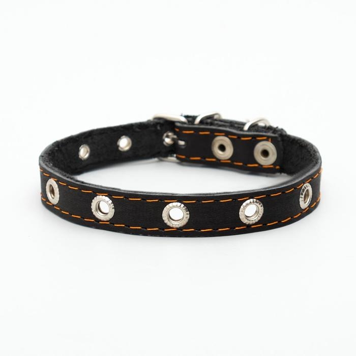 Ошейник кожаный однослойный с рифлеными люверсами, безразмерный, 40 х 1,5 см, ОШ 27-35 см, чёрный 7