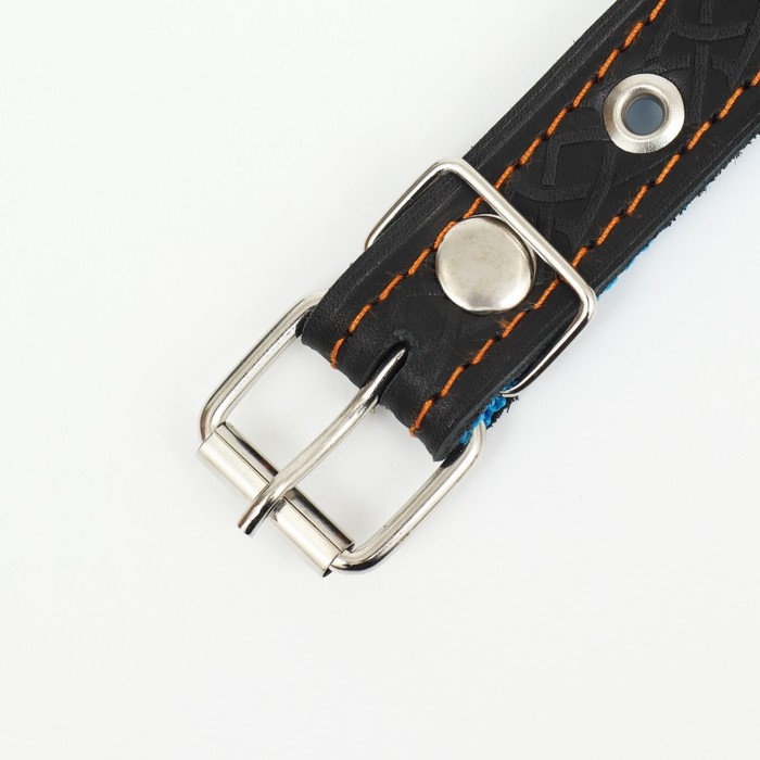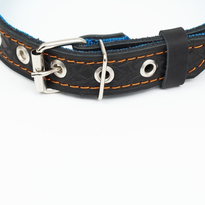 Ошейник комбинированный кожа/брезент, безразмерный, 54 х 2.5 см, ОШ 17-45 см, синий