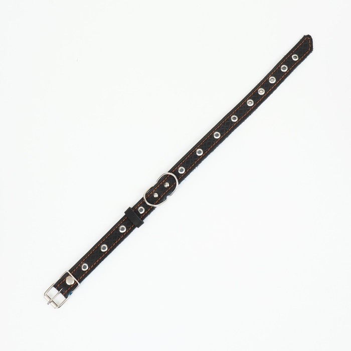 Ошейник кожаный однослойный, безразмерный, 56 х 2.5 см, ОШ 17-44 см, чёрный