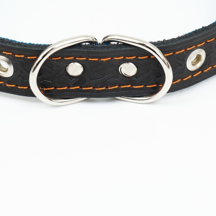 Ошейник кожаный усиленный капроном с полукольцом, 55 х 2,5 см, ОШ 27-53 см, чёрный
