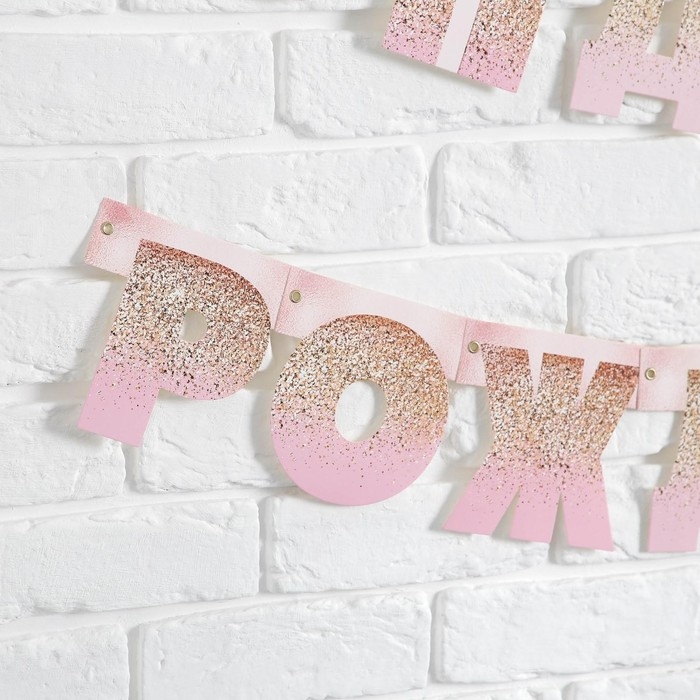 Гирлянда на люверсах «С Днем Рождения», розовая с подарком, длина 225 см