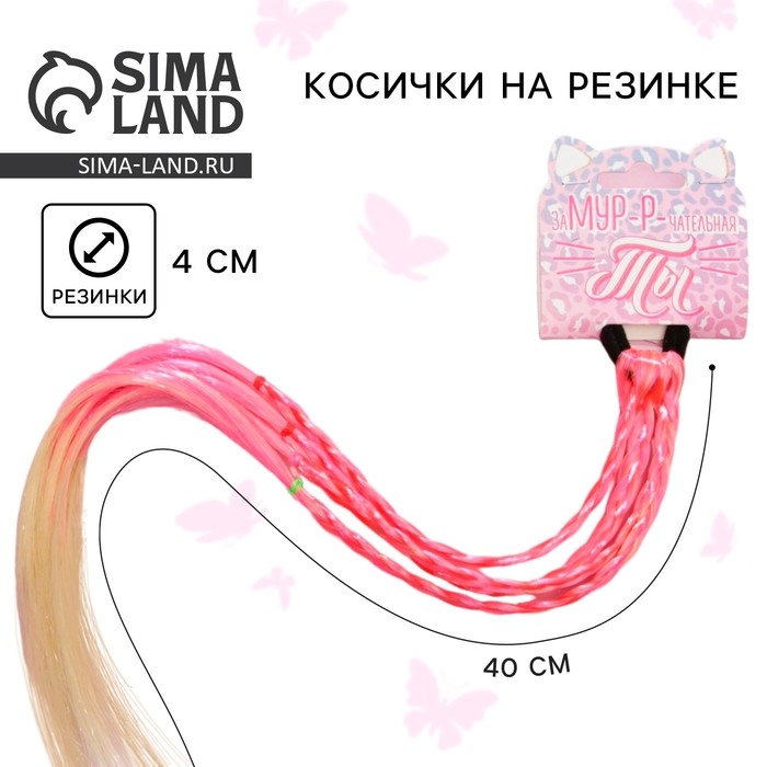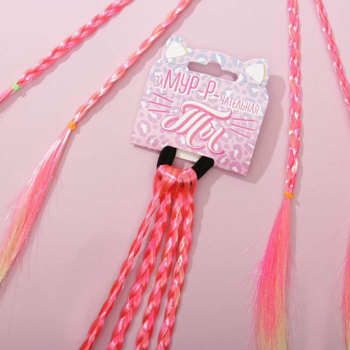 Резинки для волос , детские , цветные косички «Замур-р-чательная ты», d=4 см.
