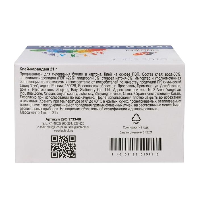 Клeй-карандаш ПВП 8 г Berlingo, с цветным индикатором