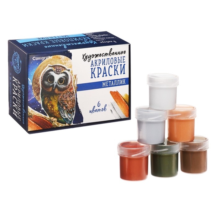 Краска акриловая, набор 6 цветов х 20 мл, Metallic, Calligrata, металлик, морозостойкая, в картонной коробке