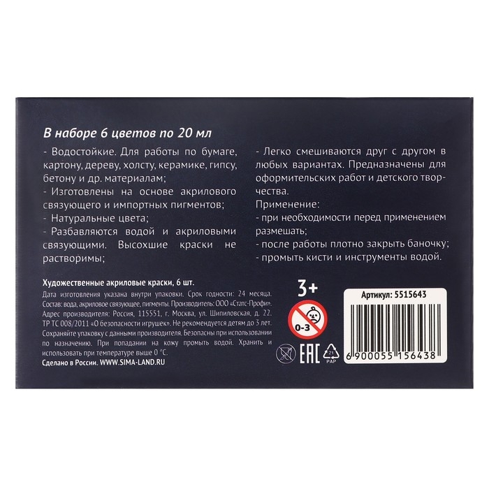 Художественные акриловые краски Calligrata используются для разных художественных техник, хобби и детского творчества. Изготовлены на основе акриловой дисперсии и красителей. Красками можно рисовать практически на любой поверхности, будь то бумага, ткань, стекло, дерево, металл, пластмасса.