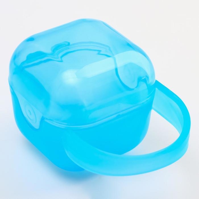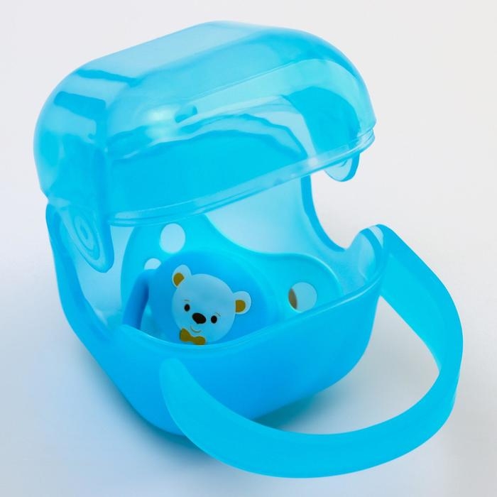 Используйте для хранения пустышки специальный контейнер. В нём маленький предмет не потеряется, не испачкается и будет всегда под рукой.Аксессуар пригодится вам на прогулках и в дороге: поместите футляр в сумку или карман коляски.Товар изготовлен из безопасного пластика. Подходит для детей с рождения.