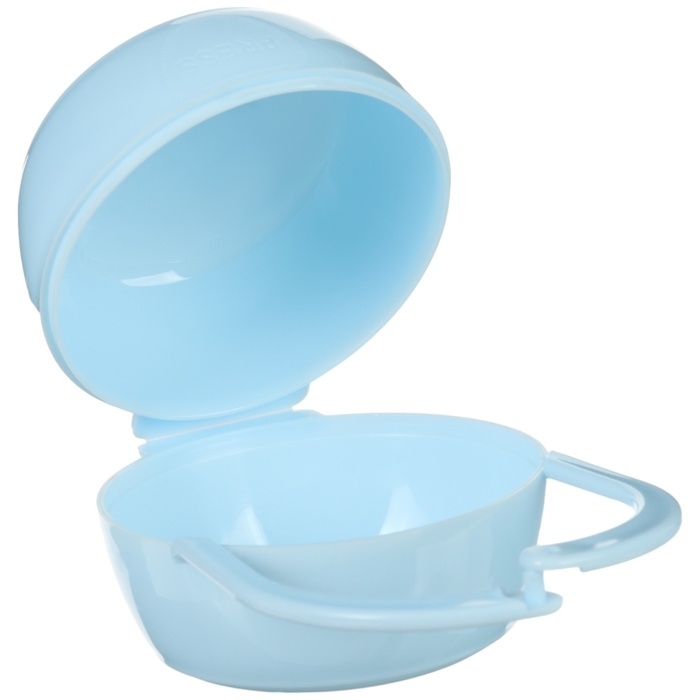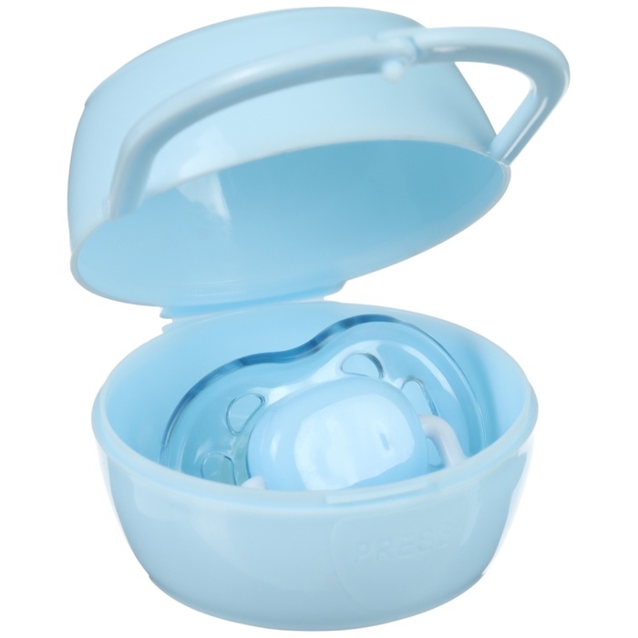 Используйте для хранения пустышки специальный контейнер. В нём маленький предмет не потеряется, не испачкается и будет всегда под рукой.Аксессуар пригодится вам на прогулках и в дороге: поместите футляр в сумку или карман коляски.Товар изготовлен из безопасного пластика. Подходит для детей с рождения.