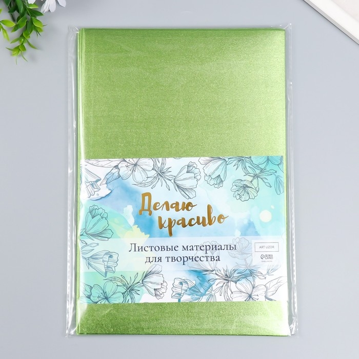 Фоамиран металлик "Зелёный салат" 1.8 мм набор 5 листов 20х30 см
