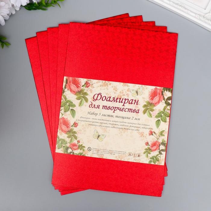 Фоамиран голограмма "Красный" 1,8 мм набор 5 листов 20х30 см