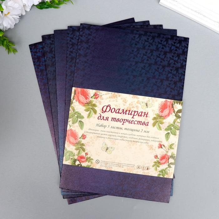 Фоамиран голограмма "Чёрный" 1.8 мм набор 5 листов 20х30 см