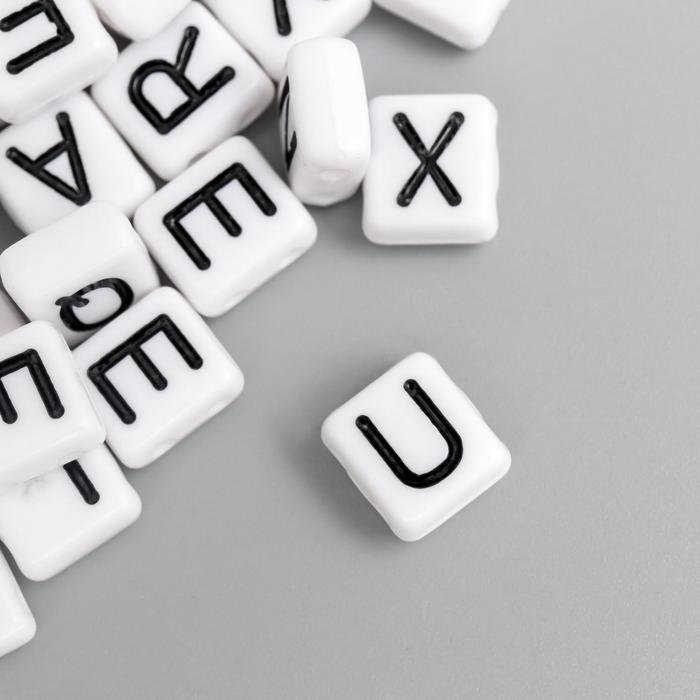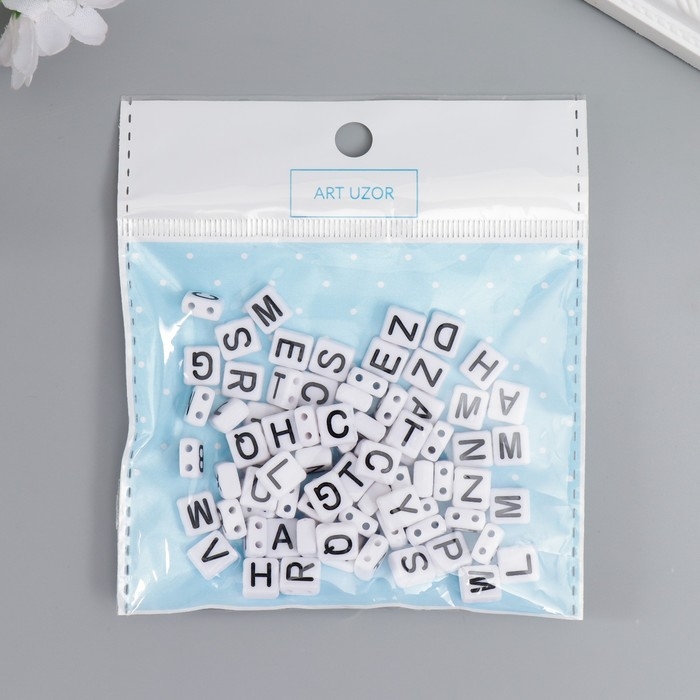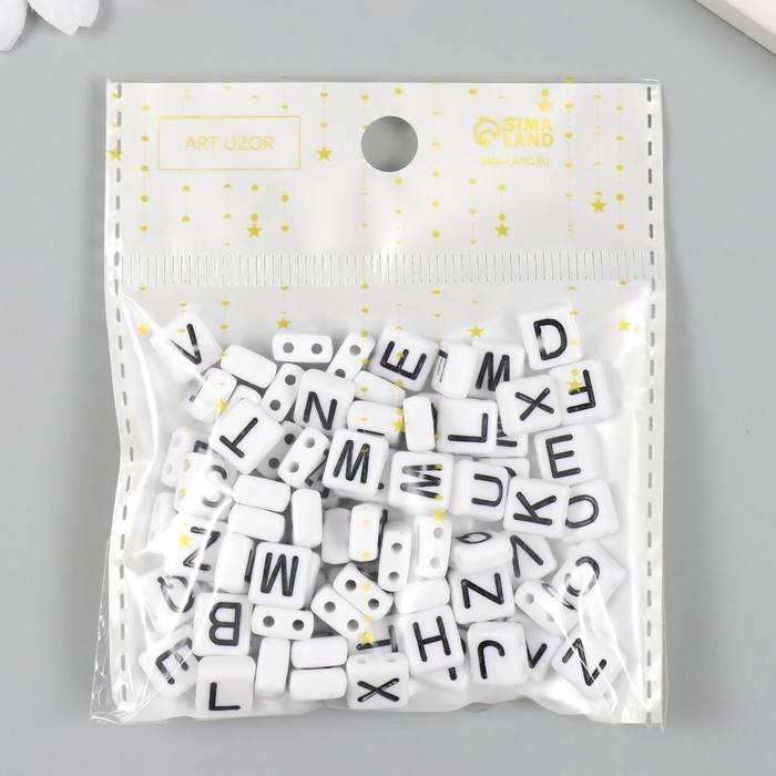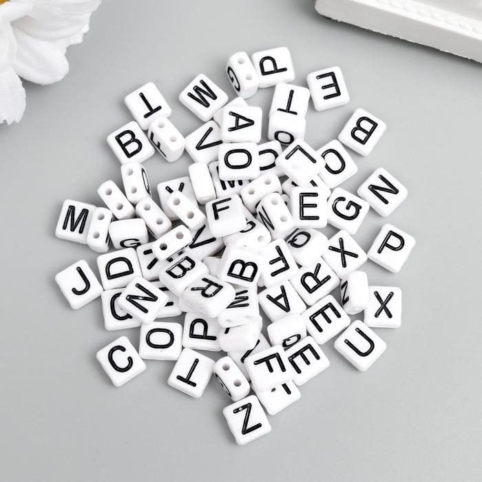 Бусины для творчества пластик "Чёрные английские буквы" белые набор 20 гр 0,4х0,8х0,8 см