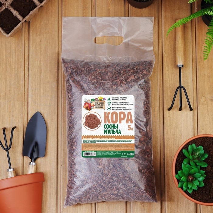 Кора сосны "Рецепты Дедушки Никиты" может использоваться как субстрат для выращивания растений в горшках, контейнерах или грунте, а также как мульча для укрытия почвы в саду или огороде. В обоих случаях она помогает сохранить оптимальные условия для роста растений, защищая корни от перегрева, переохлаждения и пересыхания. Кроме того, кора сосны предотвращает развитие сорняков, что уменьшает необходимость вручную пропалывать грядки.