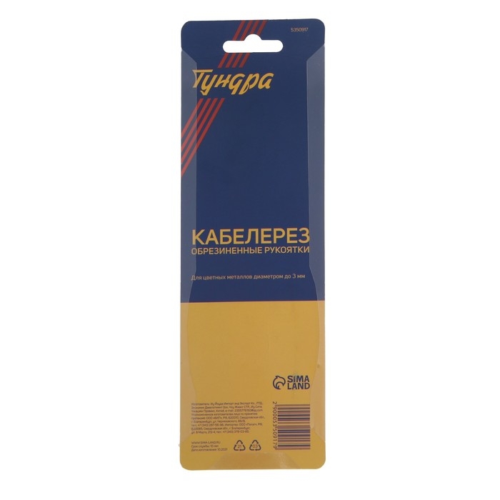 Кабелерез ТУНДРА, сталь 55, для цветных металлов до 3 мм, обрезиненные рукоятки, 150 мм