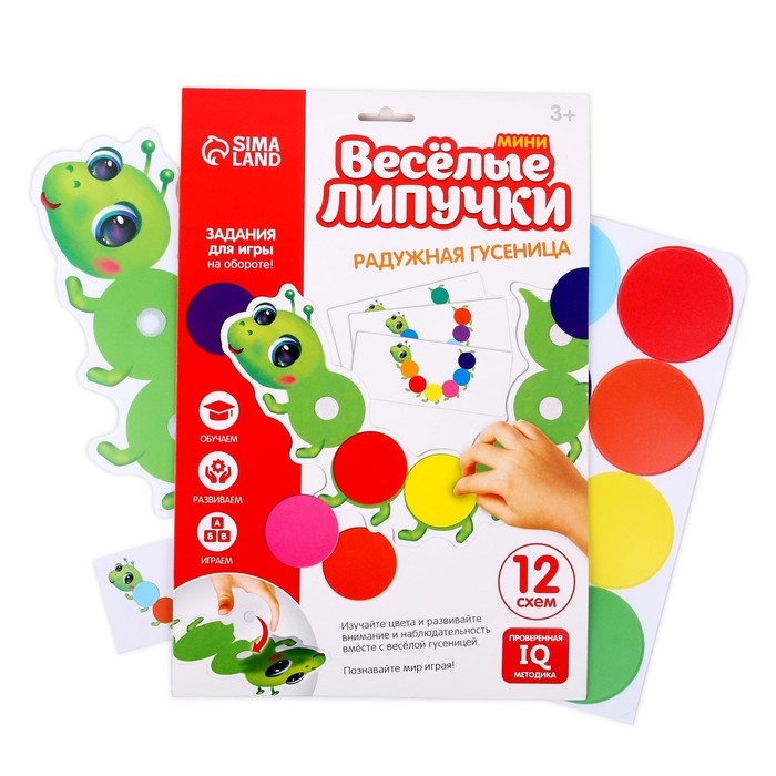 Малыш будет изучать цвета и развивать внимание и наблюдательность вместе с весёлой гусеницей.