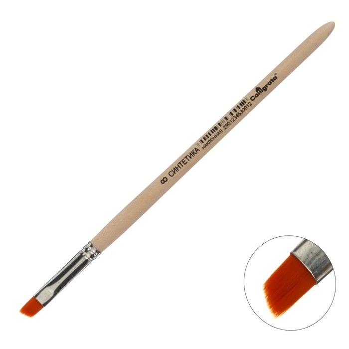 Кисть для рисования, синтетика наклонная №8 Calligrata (d-8 мм ; L-7/9 мм), ручка дерево
