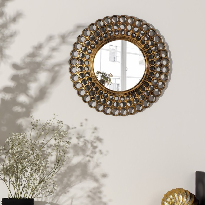 Зеркало настенное «Винтаж», d зеркальной поверхности 13 см, цвет «состаренное золото»