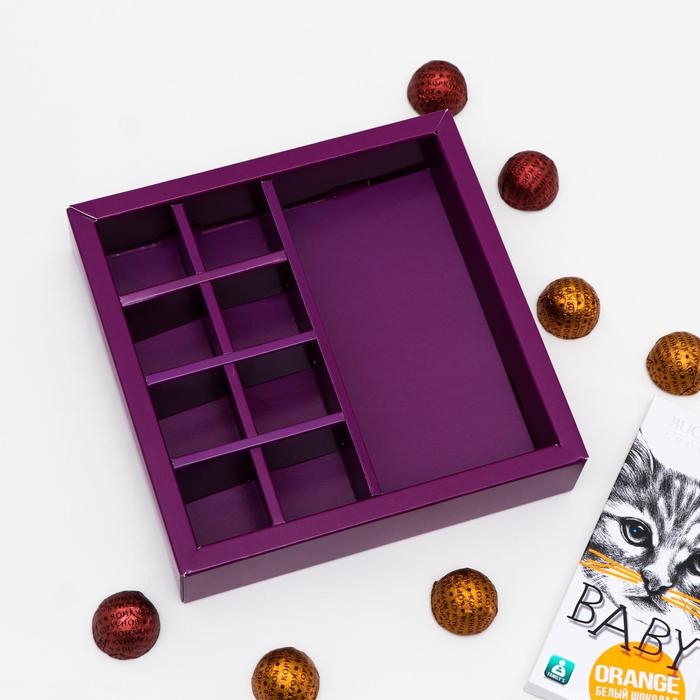 Коробка под 8 конфет + шоколад, с окном , зонтики, 17,7 х 17,85 х 3,85 см