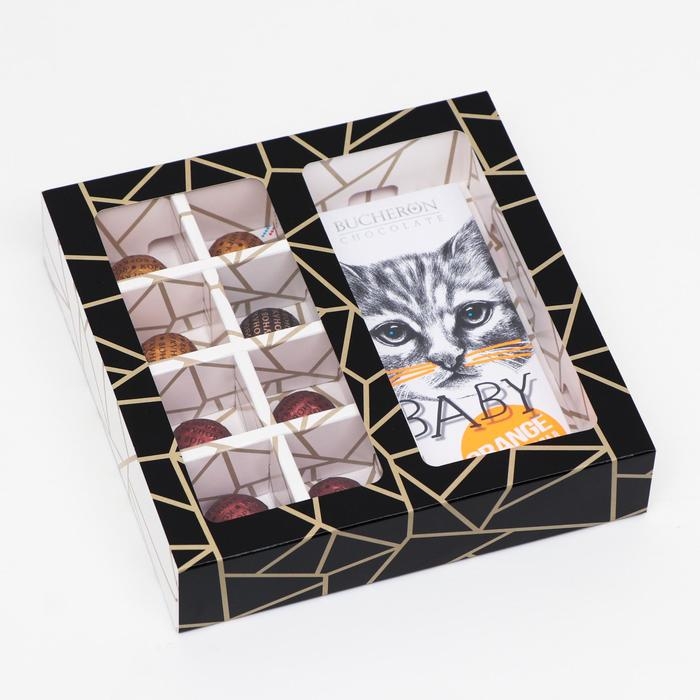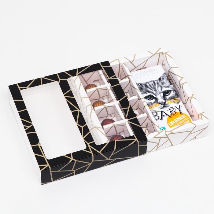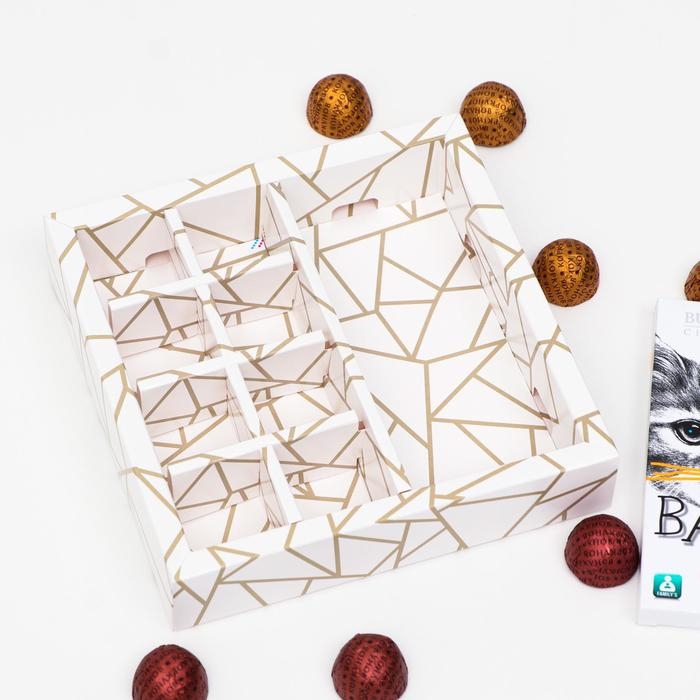 Коробка под 8 конфет + шоколад, с окном, геометрия, черно-белая, 17,7 х 17,85 х 3,85 см