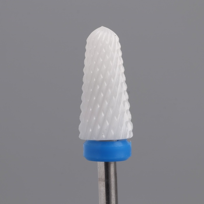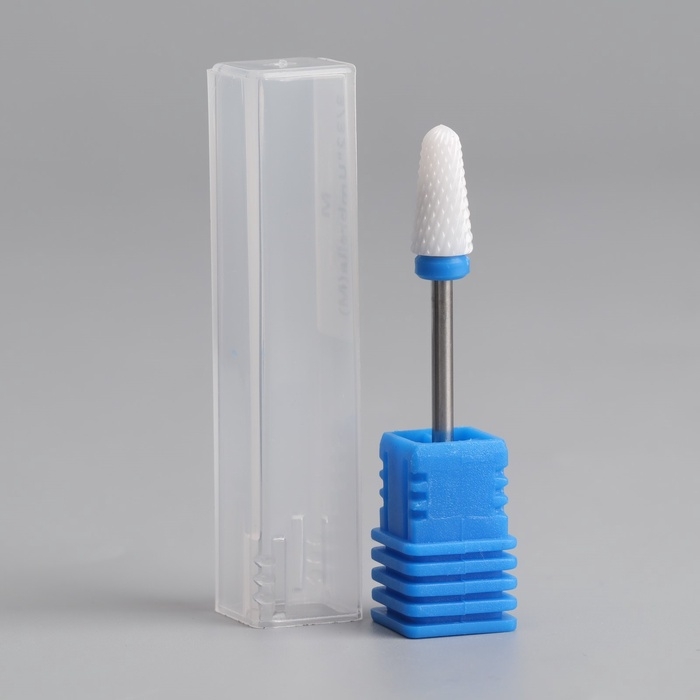 Фреза керамическая для маникюра «Конус», средняя нарезка, 6 × 13 мм, в пластиковом футляре, цвет белый