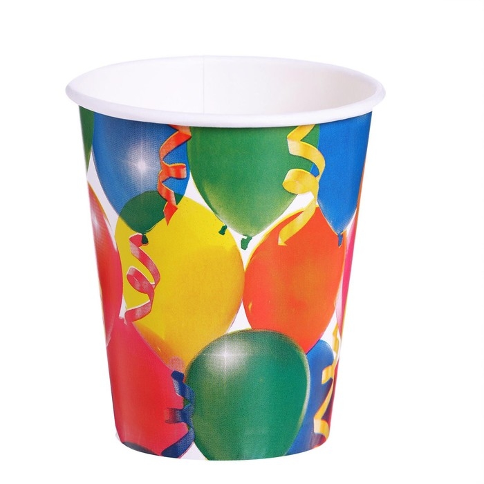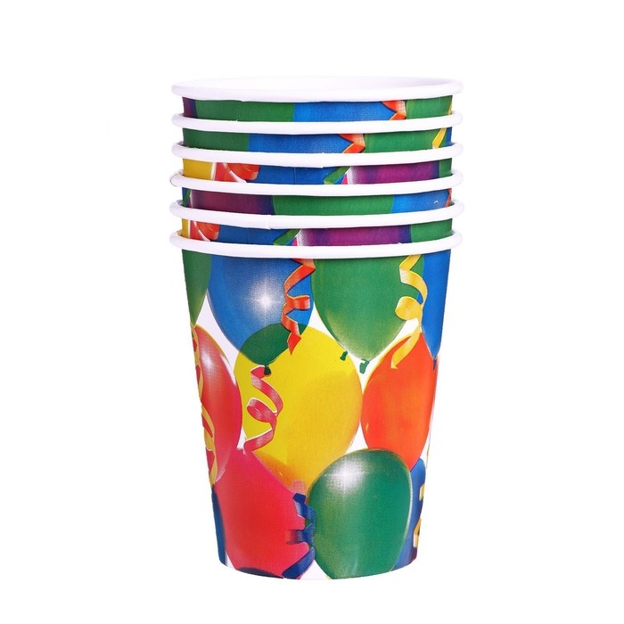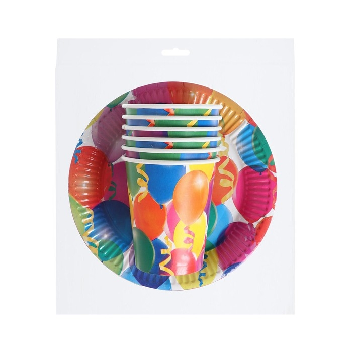 Набор бумажной посуды одноразовый Праздник. Воздушные шары и серпантин»: 6 стаканов, 6 тарелок