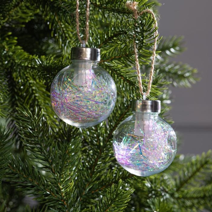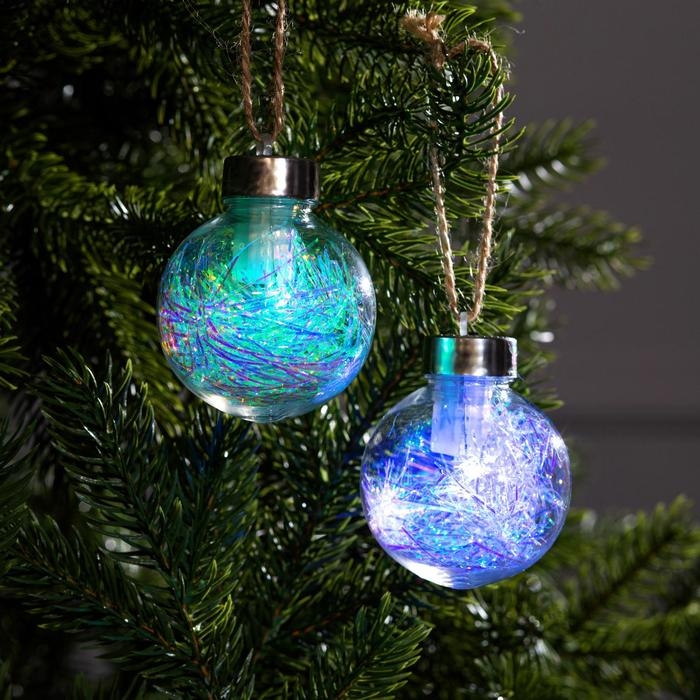 Набор ёлочных шаров «Мишура блестящая» 2 шт., батарейки, 1 LED, свечение RGB