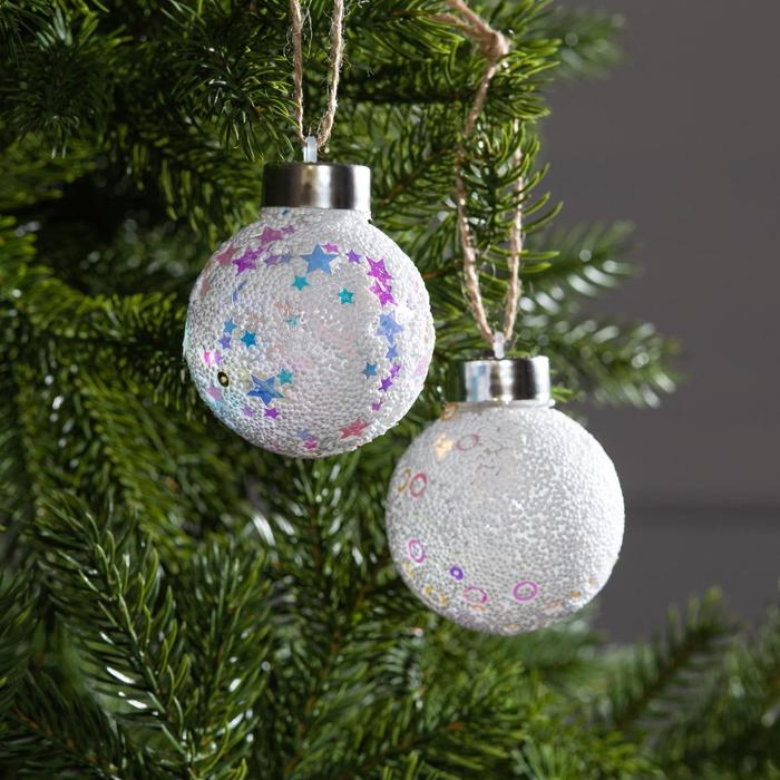 Набор ёлочных шаров «Снежные» 2 шт., батарейки, 1 LED, свечение RGB