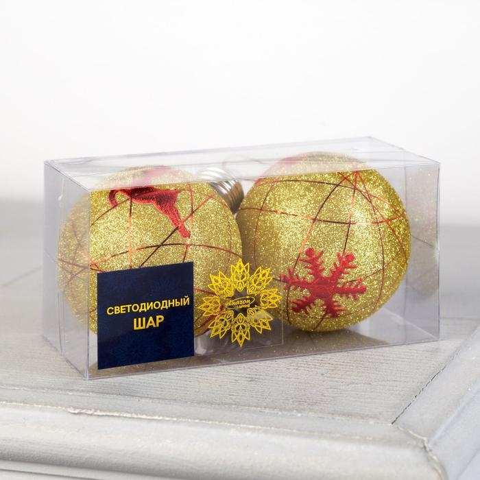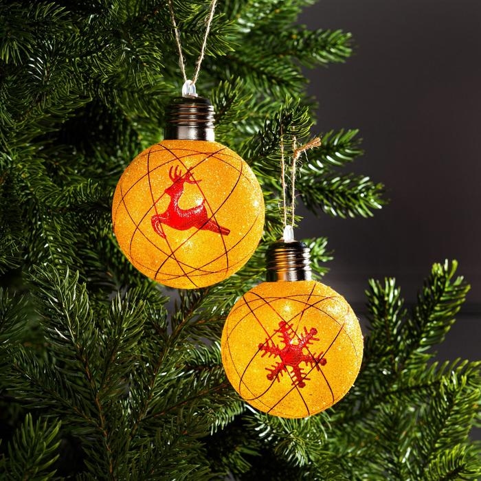 Набор ёлочных шаров «Красные нити» 2 шт., батарейки, 1 LED, свечение тёплое белое