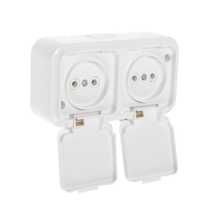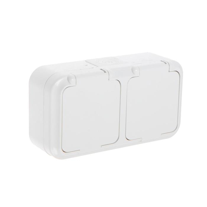 Розетка BYLECTRICA РА16-302 Пралеска, 16 А, 250 В, двухмест., наруж., без з/к, крышка, белая